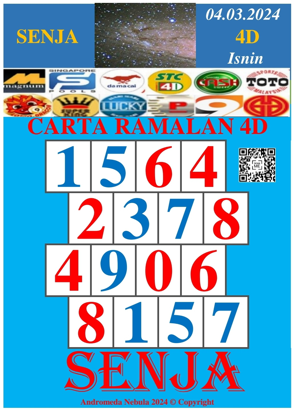 Carta Ramalan 4D Pro Senja 04 Mac 2024 (Isnin) Grand Dragon | Perdana | 9 Lotto | Lucky Hari - Hari | Super King | Lotto Macao