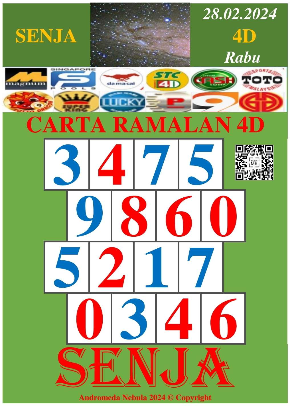 Carta Ramalan 4D Pro Senja 28 Feb 2024 (Rabu) Grand Dragon | Perdana | 9 Lotto | Lucky Hari - Hari | Super King | Lotto Macao